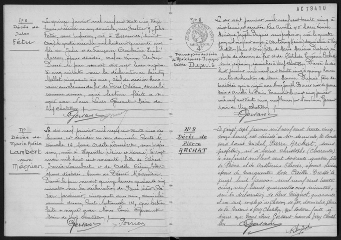 VIRY-CHATILLON. - Décès : registre d'état civil.