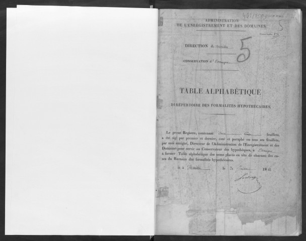 La sous-série 4 Q, correspondant au fonds des Hypothèques, représente aux Archives départementales de l'Essonne un ensemble de 5409 registres couvrant la période de l'an IV (1796) à 1955. Constitution et composition du fonds. Ce fonds est entré en sept étapes et en provenance de lieux différents : - 1972 : arrivée des registres des transcriptions de la conservation des hypothèques de CORBEIL (an VII-1869) conservés au Centre hypothécaire de LANGRES en Haute-Marne - 1973 : entrée des registres des transcriptions de la conservation des hypothèques d'ETAMPES 5AN VIII-1869) pour la même période, qui se trouvaient à la Direction des Services Fiscaux de VERSAILLES, - 1981 : versement complémentaire pour la conservation de CORBEIL : registres des inscriptions, des saisies et les tables jusqu'en 1869, détenus par le Centre hypothécaire de CORBEIL, - 1983 : transfert en provenance du Centre d'archives hypothécaires de MEAUX : registres des inscriptions et transcriptions (1869-1882), pour les deux conservations de CORBEIL et d'ETAMPES], - 1999 : nouveau transfert en provenance du Centre d'archives hypothécaires de MEAUX : registres des inscriptions et transcriptions (1882 - 1900), registres des saisies (1869-1900,) pour les deux conservations de CORBEIL et d'ETAMPES, registres des dépôts (1869- 1900) pour CORBEIL et pour ETAMPES (1878-1900). - 2000 : versement par la conservation d'ETAMPES des tables alphabétiques du répertoire des formalités hypothécaires et des répertoires des formalités hypothécaires. - 2009 : versement par la conservation de Corbeil des tables alphabétiques du répertoire des formalités hypothécaires (1949-1951), registre des bordereaux d'inscriptions d'hypothèques (1948-1951), registres des transcriptions des actes de propriétés d'immeubles (1907-1955), registre des dépôts (1932-1946). La sous-série 4Q se compose de la : - conservation de CORBEIL (4 Q 1) : 5409 articles - les inscriptions (1795-1900, 1948-1955) - les transcriptions (1799-1900, 1923-1935, 1949-1955) - les saisies (1807-1878) - les dépôts (1869-1900, 1932-1946) - tables alphabétiques (1798-1808, 1843-1844, 1900, 1949-1951) - répertoires des formalités hypothécaires (1799-1955) - conservation d'ETAMPES (4 Q 2) : 1397 articles - les inscriptions : 181 volumes (1872-1900) , tles registres antérieurs à 1872 étant lacunaires, - les transcriptions : 962 volumes (1799-1900), - les saisies : 32 volumes (1869-1900), - les dépôts : 32 volumes 1878-1900), - les registres indicateurs de la table alphabétique du répertoire des formalités : 2 volumes (1845), - les tables alphabétiques du répertoire des formalités : 40 volumes (1842-1900), - les répertoires des formalités hypothécaires : 148 volumes (1799-1867). Il est à noter que le ressort de la conservation d'ETAMPES a été réduit d'un tiers en 1811 par la création de l'arrondissement de RAMBOUILLET. C'est ainsi qu'après 1811 les inscriptions et transcriptions hypothécaires pour les deux cantons de DOURDAN sont à consulter dans le fonds de la conservation de RAMBOUILLET, déposé aux Archives départementales des Yvelines. Rappelons ici que les communes de l'actuelle Essonne qui relevaient de l'arrondissement de VERSAILLES (cantons de LIMOURS et PALAISEAU puis de PALAISEAU uniquement après le rattachement du canton de LIMOURS à RAMBOUILLET en 1811), relevaient tout logiquement de la conservation des hypothèques de VERSAILLES. Définition et réglementation hypothécaire. L'hypothèque est une cause de préférence accordée par la loi aux créanciers d'un débiteur, basée sur ses biens immobiliers et servant à leur indemnisation en cas d'insolvabilité de celui-ci. Elle doit obligatoirement être inscrite sur des registres publics où sont portées toutes les charges grevant la propriété hypothéquée. La législation. Bien qu'existant déjà sous l'Ancien régime, les hypothèques n'ont été vraiment organisées qu'à l'époque révolutionnaire par une série de lois qui subsisteront dans leurs grandes lignes jusqu'à la réforme foncière de 1955 étendant l'obligation de transcription à tout acte ou décision translatif, déclaratif ou constitutif de droits réels immobiliers. La loi du 9 messidor an III (27 juin 1795) organise la publicité des hypothèques par leur inscription sur des registres. Celle du 11 brumaire an VII (1er novembre 1798) confirme celle de l'an III et la complète par la transcription de tous les actes de mutations immobilières. La loi du 21 ventôse an VII (11 mars 1799) organise les conservations des hypothèques : il y en aura une par arrondissement. Enfin le Code civil consacre son titre XVIII, promulgué le 8 germinal an XII (29 mars 1804), à l'organisation hypothécaire. Cotation et présentation des registres. A l'intérieur de la sous-série réglementaire 4 Q correspondant aux hypothèques, il a été attribué les cotes 4 Q 1 à la conservation de CORBEIL et 4 Q 2 à celle d'ETAMPES, suivies d'un numéro d'ordre par registre. Les cotes laissées vacantes correspondent à des lacunes de la collection évaluées grâce à la numérotation des registres. C'est ainsi que les inscriptions d'ETAMPES ne débutent qu'à la cote 4 Q 2/ 341 avec le registre n° 341 de 1872. L'inventaire indique par catégorie de documents : la cote en 4 Q, le numéro de volume quand il existe et les dates extrêmes. Les tables alphabétiques. Les tables alphabétiques du répertoire des formalités hypothécaires contiennent, dans l'ordre alphabétique, les nom, prénoms et domicile des personnes concernées par les hypothèques ainsi que les numéros du volume et de la case du répertoire correspondant. Les répertoires des formalités hypothécaires recensent les débiteurs désignés dans les bordereaux de créances et ceux qui figurent sur les actes transcrits, comme acquéreurs, donataires, locataires ou sous d'autres rubriques. Les registres sont organisés sous forme de comptes p